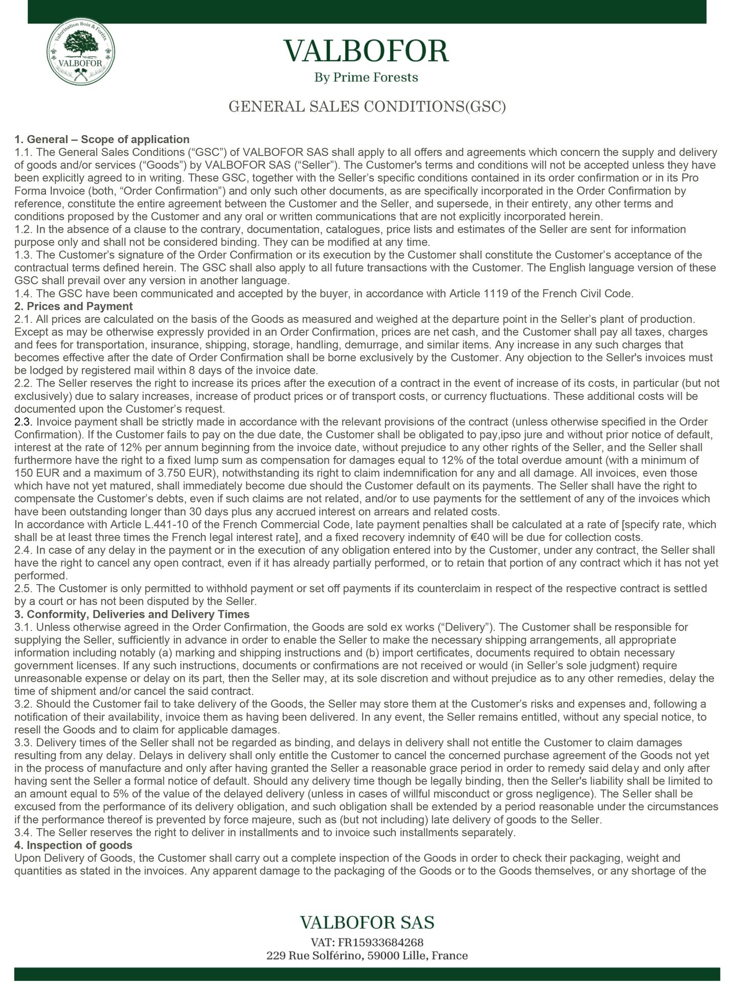 SALES CONDITIONS