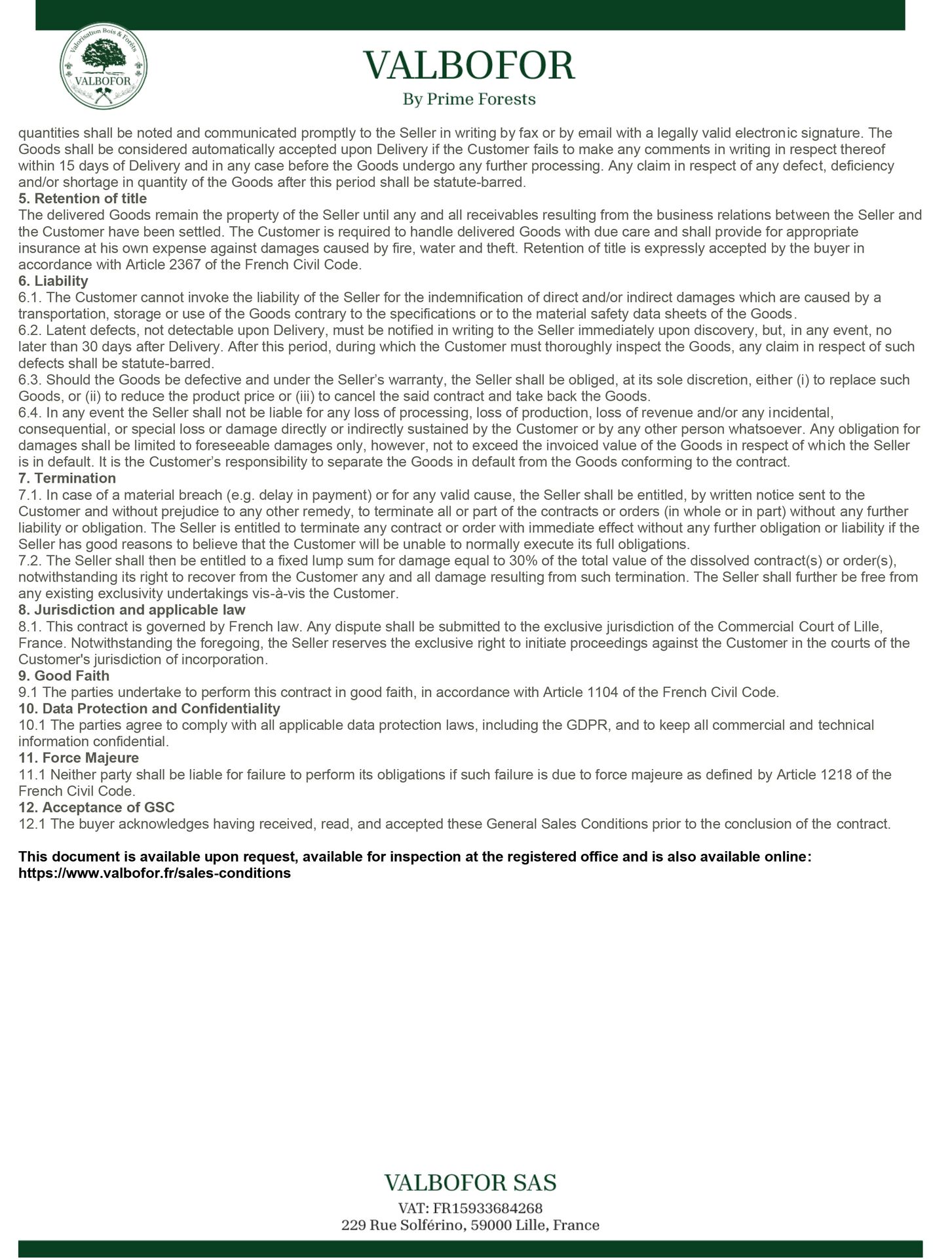 Sales conditions